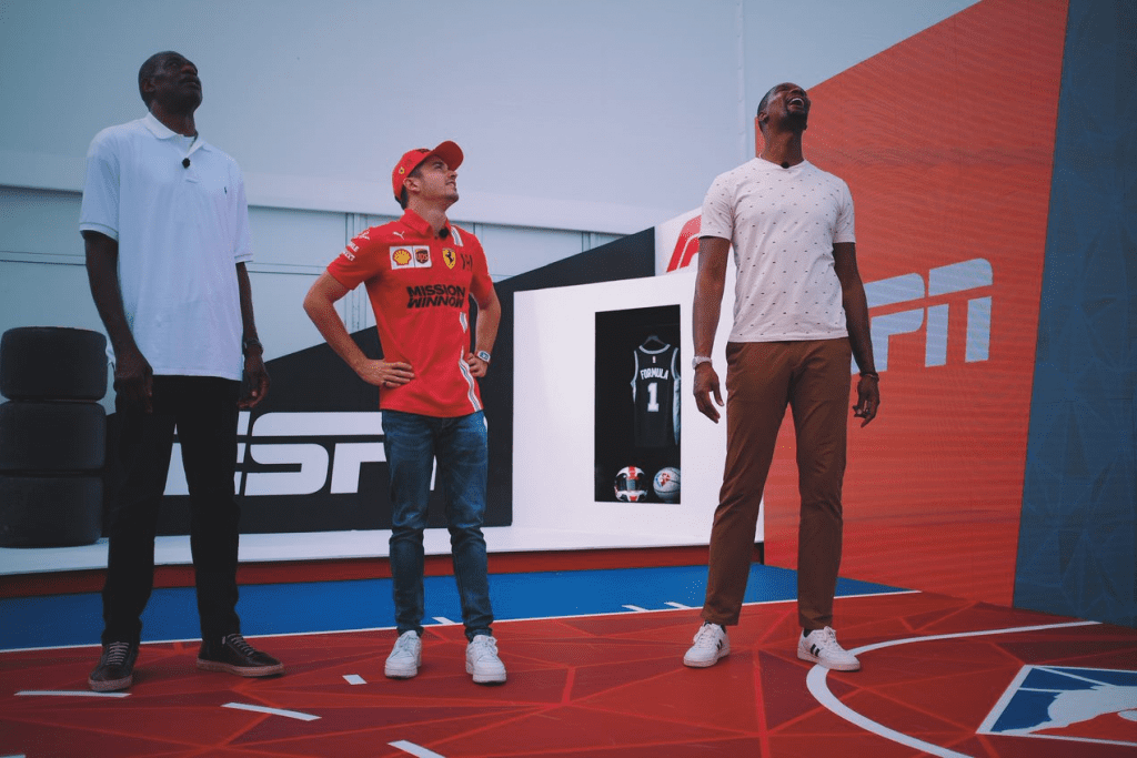 Drivers went head to head at the bespoke half-court ESPN studio, as celebrations begun for Sunday’s race and the NBA’s 75th Anniversary season, which tipped off on Tuesday night and continues this evening with an ESPN doubleheader as the Brooklyn Nets visit the Philadelphia 76ers (7:30 p.m. ET), and the Phoenix Suns take on the Los Angeles Lakers (10 p.m. ET).