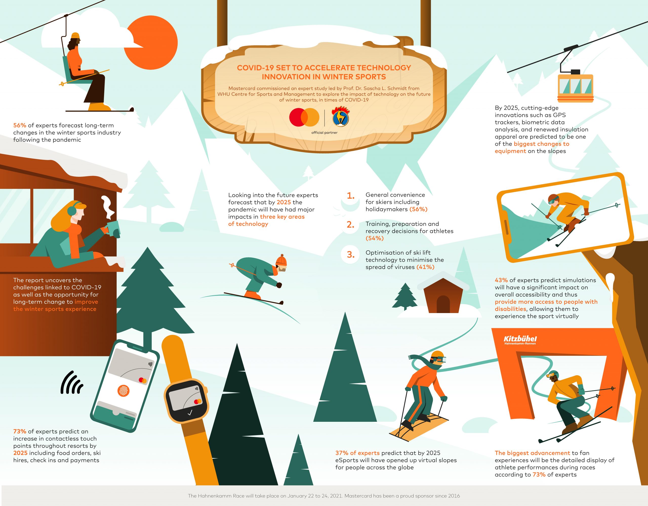 In order to analyze the effect of COVID-19 on the winter sports industry, Mastercard, the sponsor of the Hahenkamm Races, has published a new independent Delphi report composed of 53 winter sports experts. The study looks at the effect of technology during a pandemic on the future of the winter sports industry, with results showing that COVID-19 is likely to amplify the sector into a technological revolution by 2025.