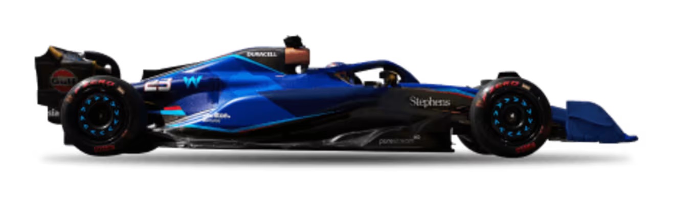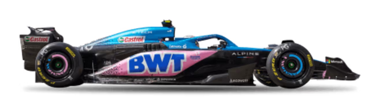 Starting at the back of our pack is Alpine. The Alpine F1 car burst on the scene in 2021 with a beautiful homage to the French flag, showing a very visually stunning blue and red livery split with a tasteful white stripe. A few years later, Alpine seems to have lost its design prowess. Once brimming with promise, this car is one of squandered potential and an identity crisis—a casualty of the pursuit to shave milliseconds off their track times by designing the vehicle with 70% of its composition as bare carbon. Alpine is pinning its hopes on the weight and speed advantages of stripping paint from its cars. However, with virtually no visual identity left, will anyone truly take notice of the new A524 as it meanders through the midfield?