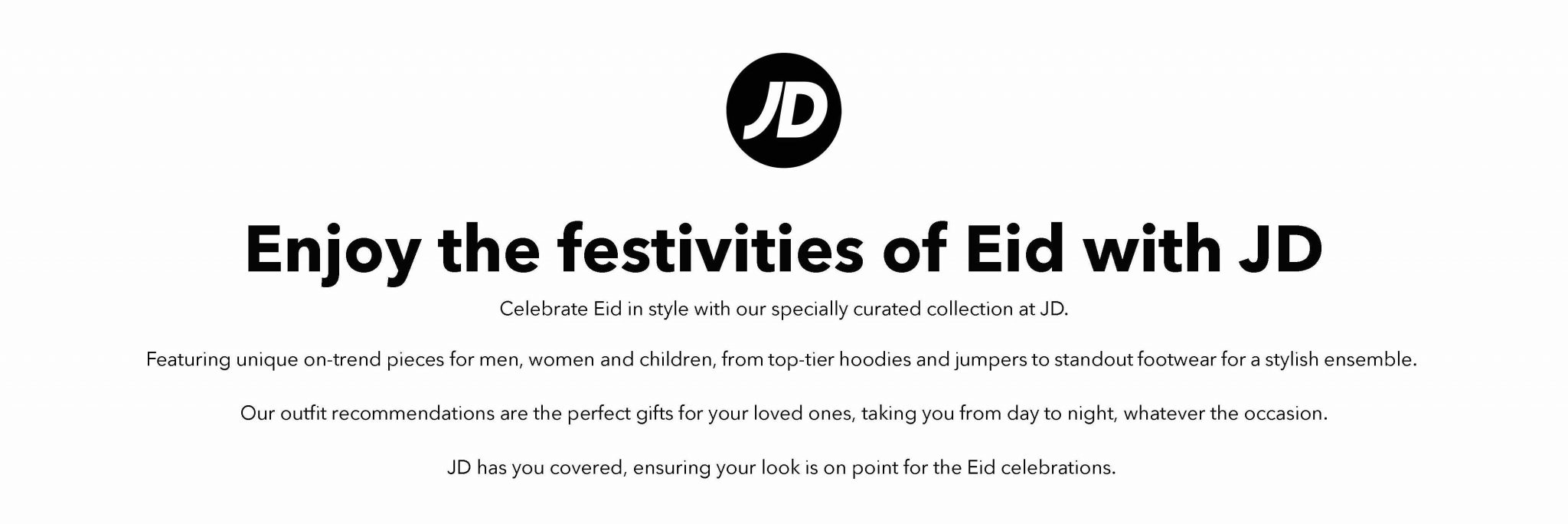 As Eid firmly approaches and becomes a day celebrated by many, leading retailer of sports, fashion and lifestyle brands, JD recommends their top on-trend selects from men, women, and children’s clothing to even footwear to kick off your Eid celebrations.