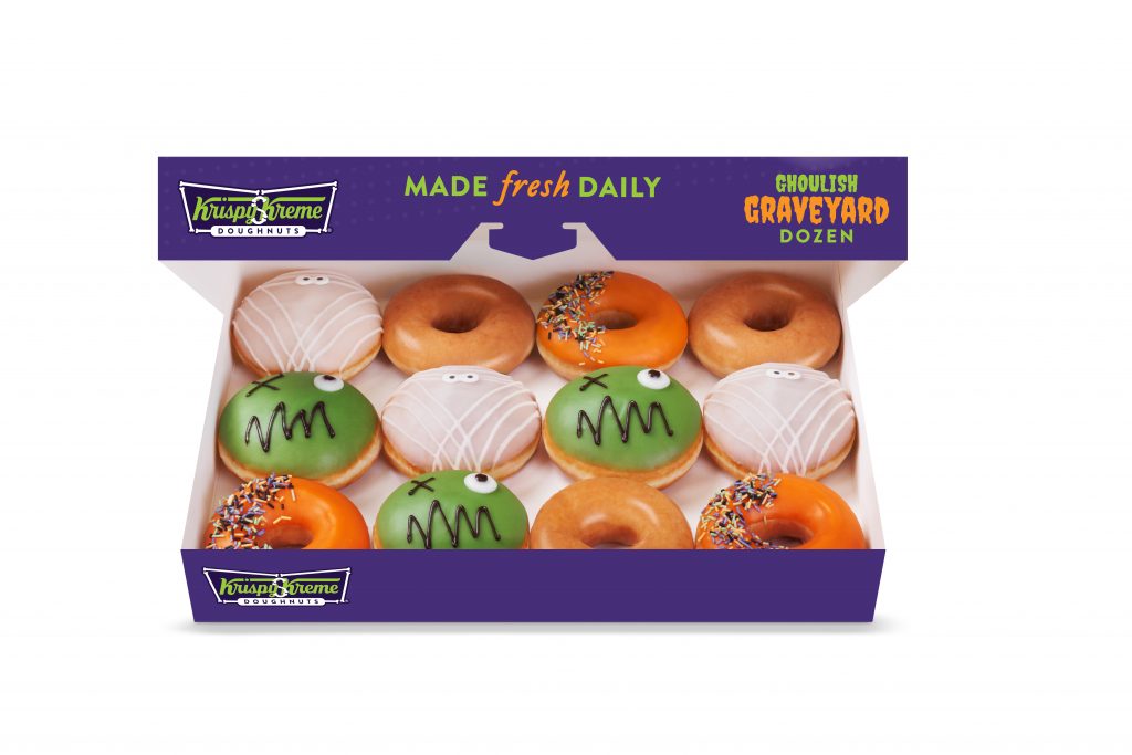 - 3 pack (from £6.50) and Dozen (from £16.95): Share the Halloween skremes with Krispy Kreme’s Ghoulish Graveyard selection of 3 and 12 doughnuts. Available to pre-order from the Krispy Kreme website from Friday, 7th October 2022.