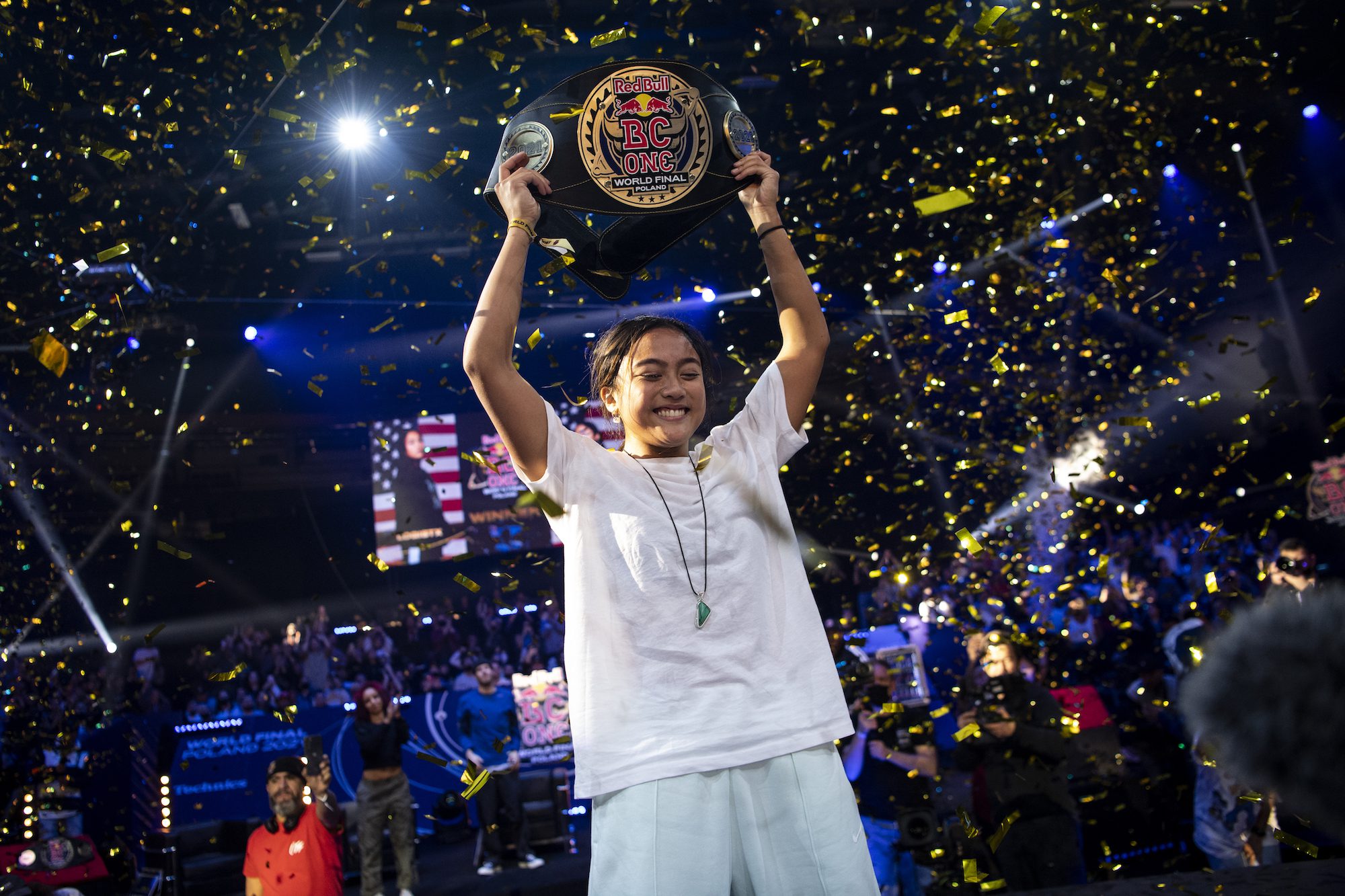 B-Girl World Finalists included Sidi (Greece), San Andrea (France), Madmax (Belgium), Paulina (Poland), Ami (Japan), Kastet (Russia), Yell (South Korea), Luma (Colombia), Ram (Japan), Carito (Argentina), Nadia (Russia), Ayumi (Japan), Fanny (France), Stefani (UK) and Vavi (Russia) who all took part in epic breaking battles for the prestigious world champion title. But it was B-Girl Logistx who dethroned two-time reigning Red Bull BC One World Champion, B-Girl Kastet from Russia. She defeated B-Girl Vavi, also from Russia, in the final to become the youngest b-girl winner to take the belt.
