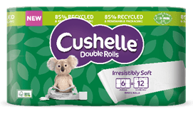 Cushelle, makers of irresistibly soft toilet tissue, is helping shoppers do their bit for their environment, first by conducting the research which found 86 per cent of us think councils should be clearer about what can or can’t be recycled. Then they decided to launch a new Double Roll toilet tissue – using packaging made from 85 per cent recycled and renewable materials!
