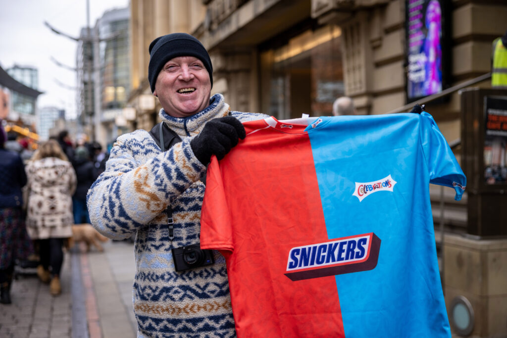 To mark the announcement, Celebrations has unveiled a limited-edition half-and-half red and blue football shirt, featuring the Snickers logo as a playful homage to Manchester’s famous football rivalry. The shirts will be handed out to fans today inviting them to share their festive shirts with pride and join in the sweet debate. Will Snickers unite the city, or will this victory add fuel to the festive chocolate rivalry?