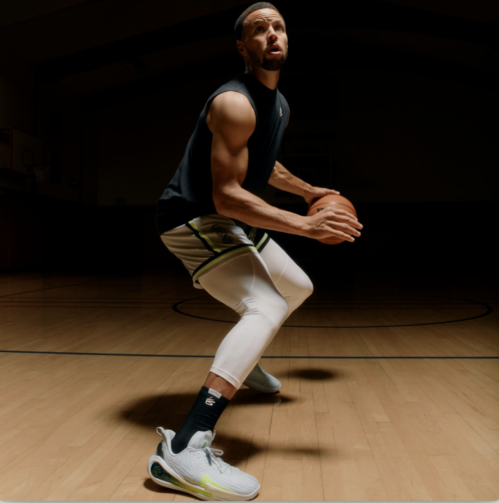 This first element of the Curry 12 galaxy to debut will be the ‘Gravity’ colorway, inspired by the gravitational force that surrounds Stephen on the court. Just as gravity anchors the universe in place, Stephen draws in defenders with the threat of his scoring ability. To illustrate this invisible pull, the Curry 12 ‘Gravity’ has a clean, light gray upper with a splash of green and black on the TPU sidewall, meant to emulate particles floating through the universe. With an outsole and midsole built with UA Flow technology, the Curry 12 ‘Gravity’ offers a strong foundation for those players who want comfort coupled with superior traction. This combination of Flow alongside a second segemented Pebax plate in the forefoot of the shoe creates more flexibility for players, enhancing court feel and the ability to stop and cut with precision.