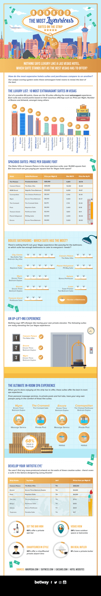 If you want to experience all the extravagance that Vegas has to offer, but haven’t quite got that kind of cash, here’s the highest-scoring suites, with the lowest price per night.