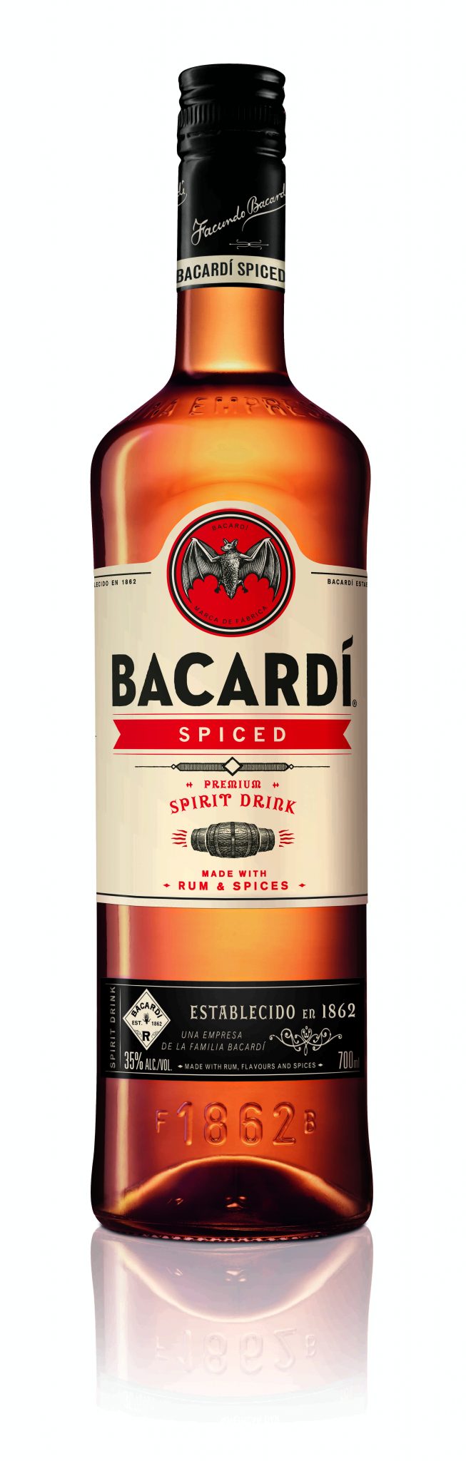BACARDÍ Spiced is made with gold rum mellowed in charred American Oak for a hint of smokiness and blended with natural flavours and spices for a bold, yet smooth taste. Unlike some of its most popular competitors, BACARDÍ Spiced does not use artificial sweeteners to enhance the rich flavours of its spices making it a delicious and authentic drink that can be enjoyed whatever the occasion.