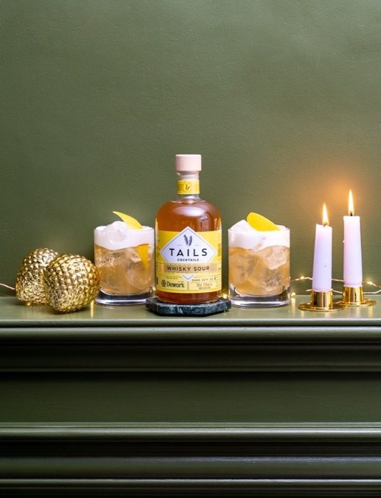 - Pour 125ml of Tails Whisky Sour into a shaker filled with ice, shake well and strain into glass. Garnish with lemon zest.