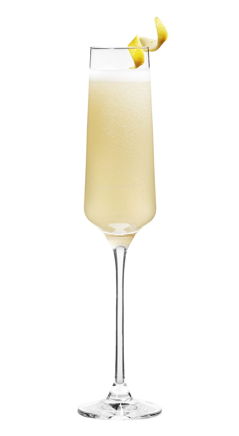 - Top with chilled Champagne, stir slowly and finish with a zest of lemon.