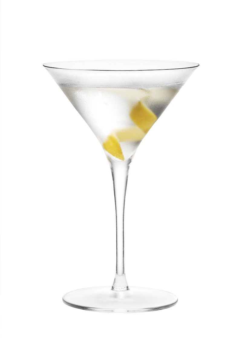 - Add all the ingredients to a mixing glass and stir to chill down, strain into frozen martini glass and garnish accordingly.