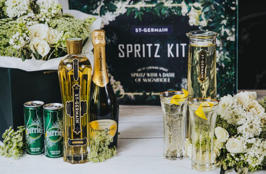 Available to purchase on the McQueens website for £185, the limited-edition gift features a stunning floral bouquet, inspired by the freshly handpicked elderflower blossoms used to create the iconic liqueur, along with everything required to make a ST-GERMAIN Spritz cocktail. Including a bottle of ST-GERMAIN Elderflower Liqueur, a bottle of Perrier-Jouët Grand Brut Champagne, Perrier Sparkling Water and a pair of art-deco glassware.