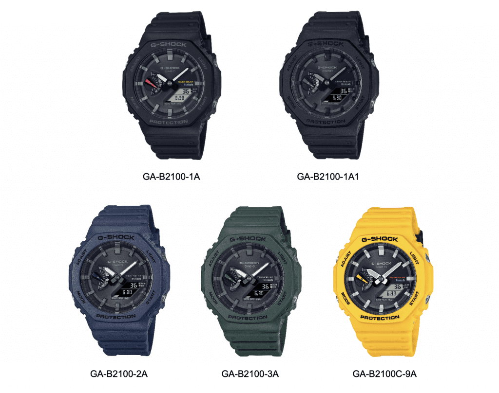 Casio announced today the latest addition to the G-SHOCK brand of shock-resistant watches. The five new GA-B2100 watches are the first in the iconic octagonal 2100 line to be equipped with Smartphone Link connectivity via Bluetooth and solar charging capabilities. Released in 2019, the base-model GA-2100 was a contemporary interpretation of the very first G-SHOCK, the DW-5000C. Its simple, stylish design proved popular around the world, especially among younger consumers.