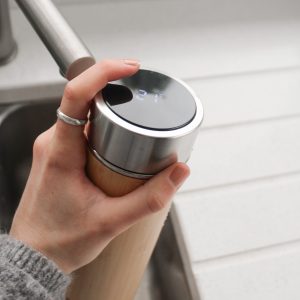 Let’s take the self cleaning UV bottle. Yes, self cleaning. Now a staple, ‘won’t leave home without it’ item for me. When out and about, or at a festival, or camping, cleaning your bottle is not an easy task. Bottles get refilled time and time again throughout the day without a great deal of thought to the build up of bacteria and germs on the inside. With the UV self cleaning bottle, there’s UV light built into the inside of the lid where you simply press the button, leave it for three minutes and it disinfects the water which may have had it’s cleanliness compromised. There’s no residue left behind, and it kills germs.