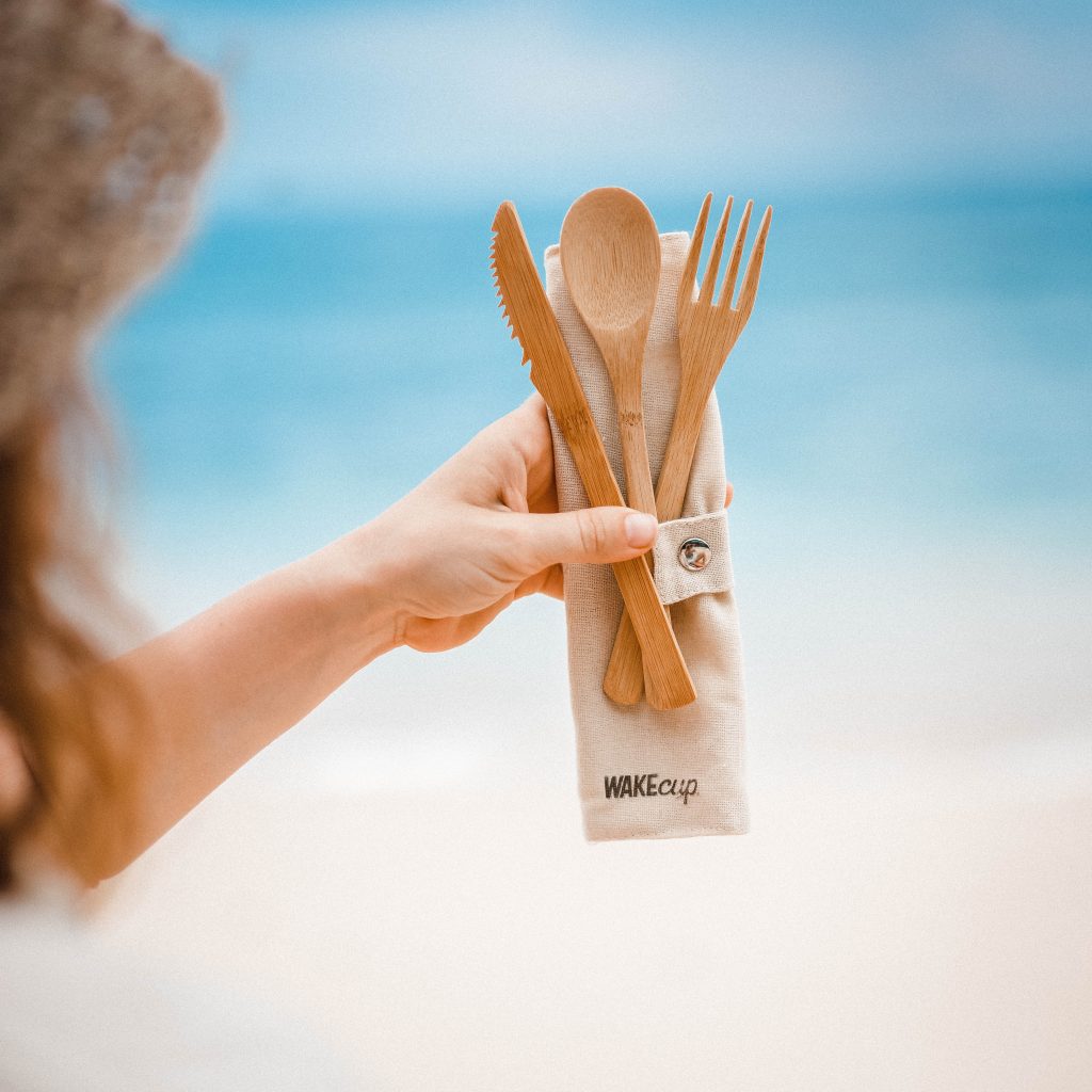 As festival and camping season fast approaches, it’s time to start thinking about your essentials for the great outdoors. With many festivals and camping sites adopting a plastic free policy, it’s important to get your key utensils right and make sure that they have a use beyond a week of partying and relaxing in a field. Aside from the obvious – tent, wellies and waterproofs, there are three key items that need to top your list to get through a week of outdoor living. A leak-proof drinks bottle to keep you refreshed and hydrated (let’s face it, we’ve all been through at least one soggy bag contents episode), a travel mug for that the morning after the night before hot coffee, and your very own set of reusable cutlery for eating on the go ,or in a field or wherever you might be. The perils of flimsy disposable plastic forks snapping before they have even allowed us to sample what’s on the plate are real, and that’s before even considering their waste factor.